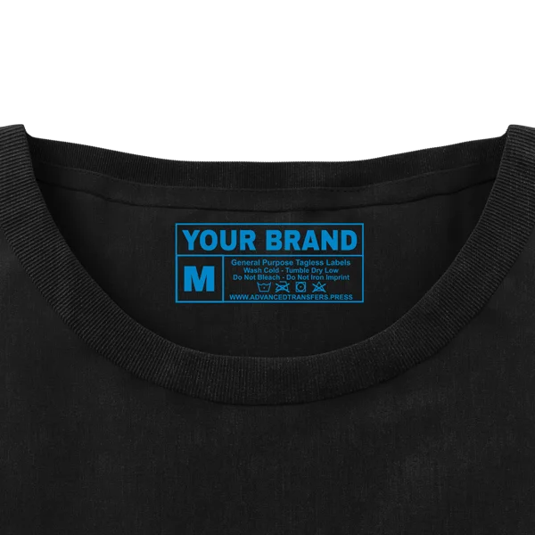 This is the label you use when you want consistent, reliable branding across your entire line. Designed to be easy to apply and strong on cotton and blends that can handle higher temps, these general purpose tagless labels are a dependable option for basics, team gear, uniforms, and private label merch that needs to look retail-ready every time.